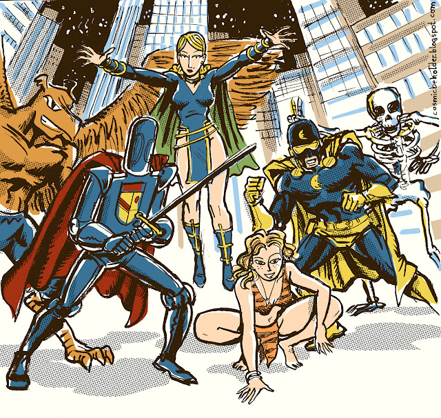 For a while, the line-up of Captain Evening and The Odds consisted only of the Living Skeleton, the Blue Knight, Merv the Griffin and the Captain himself (see Tales To Behold 5).